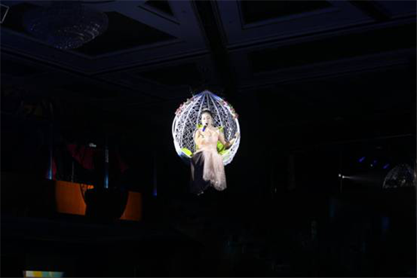 此次文藝匯演的亮點,采用真人威亞設備。人未至,聲已到,隨著歌手從空中徐徐而降,配合干冰舞臺效果,整個過程宛如仙境,美輪美奐。